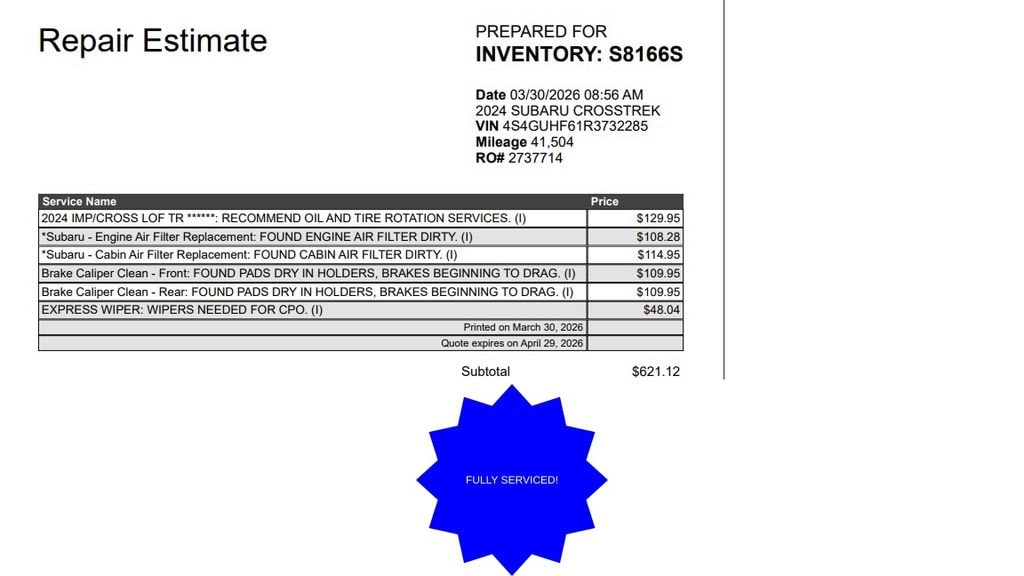 Royal Nissan Subaru is proud to offer this charming 2024 Subaru Crosstrek an absolutely stunning SUV with the following Features: Popular Package #4A (All-Weather Floor Liners, Auto-Dimming Exterior Mirror w/Approach Light, Auto-Dimming Mirror w/Compass & HomeLink, Rear Bumper Cover, and Splash Guards), Standard Model, 3.70 Axle Ratio, 4-Wheel Disc Brakes, 6 Speakers, ABS brakes, Air Conditioning, Alloy wheels, AM/FM radio: SiriusXM, Anti-whiplash front head restraints, Auto High-beam Headlights, Automatic temperature control, Brake assist, Bumpers: body-color, Driver door bin, Driver vanity mirror, Dual front impact airbags, Dual front side impact airbags, Electronic Stability Control, Emergency communication system: STARLINK Safety and Security (Subscription Required), Exterior Parking Camera Rear, Four wheel independent suspension, Front anti-roll bar, Front Bucket Seats, Front Center Armrest, Front dual zone A/C, Front fog lights, Front reading lights, Fully automatic headlights, Heated door mirrors, Heated Front Bucket Seats, Heated front seats, Illuminated entry, Knee airbag, Leather Shift Knob, Low tire pressure warning, Occupant sensing airbag, Outside temperature display, Overhead airbag, Overhead console, Panic alarm, Passenger door bin, Passenger vanity mirror, Power door mirrors, Power steering, Power windows, Radio data system, Radio: Subaru STARLINK 11.6" Multimedia Plus Sys, Rear anti-roll bar, Rear seat center armrest, Rear window defroster, Rear window wiper, Remote keyless entry, Security system, Speed control, Speed-sensing steering, Split folding rear seat, Spoiler, Sport Cloth Upholstery, STARLINK/Apple CarPlay/Android Auto, Steering wheel mounted audio controls, Tachometer, Telescoping steering wheel, Tilt steering wheel, Traction control, Trip computer, Turn signal indicator mirrors, Variably intermittent wipers, and Wheels: 18" x 7.0J Dark Gray Aluminum Alloy.