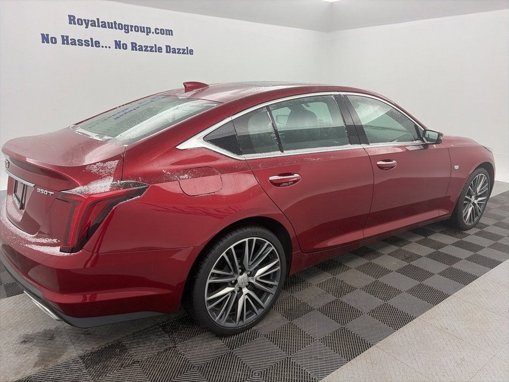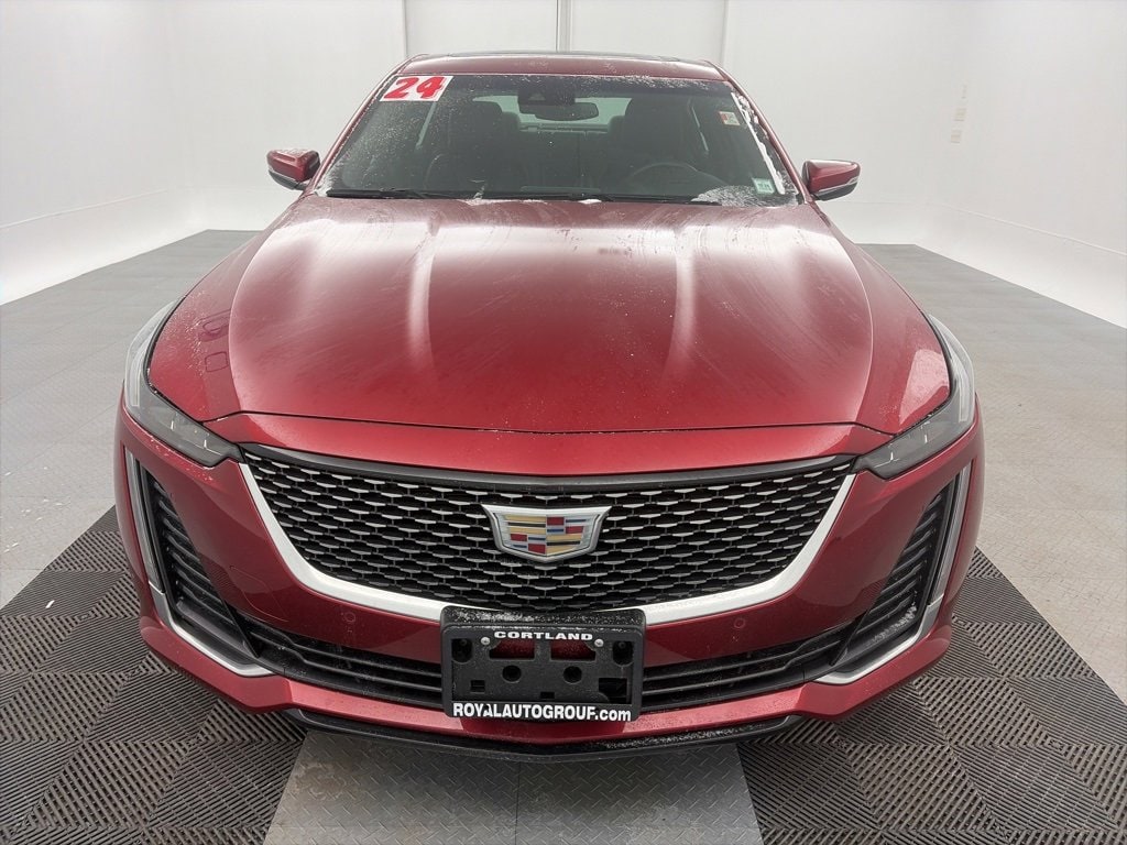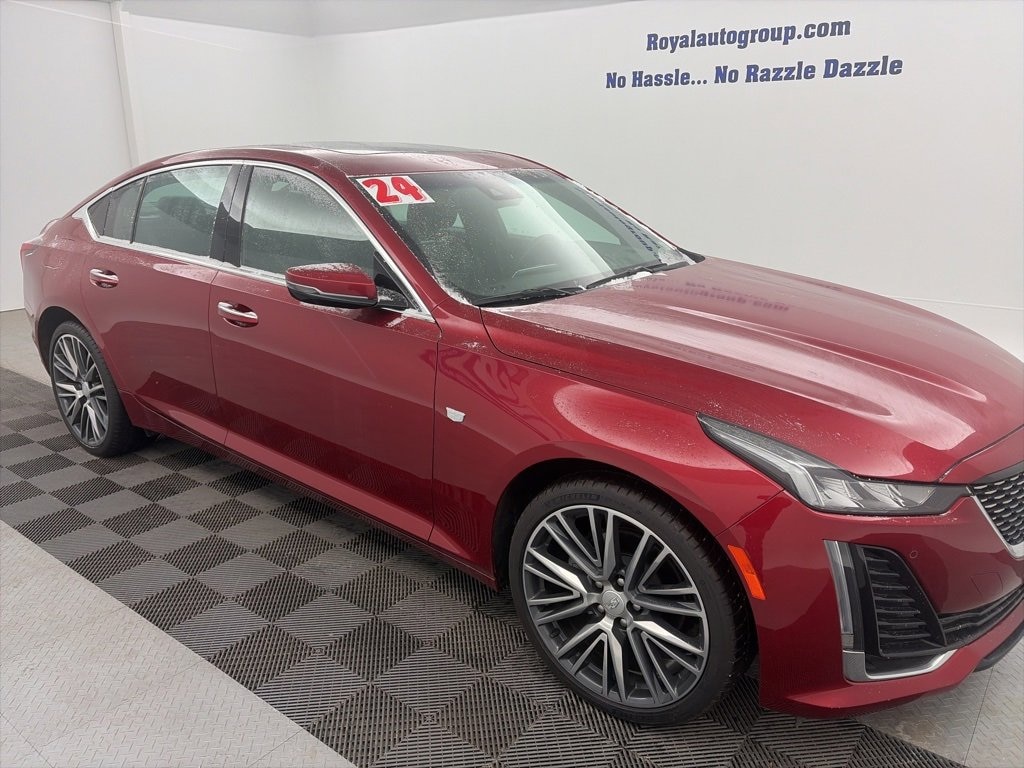 Royal Motor Company is proud to offer this good-looking 2024 Cadillac CT5 a positively outstanding-looking Sedan with the following Features: Climate Package (Driver 4-Way Power Lumbar Seat Adjuster, Front Passenger 4-Way Power Lumbar Seat Adjuster, Heated Driver & Front Passenger Seats, Heated Steering Wheel, and Ventilated Driver & Front Passenger Seats), Preferred Equipment Group 1SD (Body-Color Heated Pwr-Adjustable Outside Mirrors, Dual Diagonal Color Driver Information Center, Front & Rear Park Assist, HD Rear Vision Camera, Inside Rear-View Auto-Dimming Mirror, Lane Keep Assist w/Lane Departure Warning, LED Reflective Windshield Alert, and Steering Wheel Mounted Paddle Shift Controls), 3 USB Ports, 4-Wheel Disc Brakes, 9 Speakers, ABS brakes, Air Conditioning, Alloy wheels, AM/FM radio: SiriusXM with 360L, Apple CarPlay/Android Auto, Auto High-beam Headlights, Auto-dimming door mirrors, Auto-dimming Rear-View mirror, Automatic Stop/Start w/Disable, Automatic temperature control, Brake assist, Bumpers: body-color, Compass, Delay-off headlights, Driver door bin, Driver vanity mirror, Dual front impact airbags, Dual front side impact airbags, Electronic Stability Control, Emergency communication system: OnStar and Cadillac connected services capable, Exterior Parking Camera Rear, Four wheel independent suspension, Front anti-roll bar, Front Bucket Seats, Front Center Armrest, Front dual zone A/C, Front License Plate Bracket, Front Passenger 8-Way Power Seat Adjuster, Front reading lights, Fully automatic headlights, Garage door transmitter, HD Radio, Heated door mirrors, Illuminated entry, Knee airbag, Leather Seating Surfaces, Leather steering wheel, Low tire pressure warning, Memory seat, Occupant sensing airbag, Outside temperature display, Overhead airbag, Overhead console, Panic alarm, Passenger door bin, Passenger vanity mirror, Power door mirrors, Power driver seat, Power passenger seat, Power steering, Power windows, Premium 9-Speaker Audio System Feature, Radio data system, Radio: Cadillac User Experience, Rain sensing wipers, Rear anti-roll bar, Rear reading lights, Rear seat center armrest, Rear window defroster, Remote keyless entry, SiriusXM w/360L, Speed control, Speed-sensing steering, Split folding rear seat, Steering wheel memory, Steering wheel mounted audio controls, Tachometer, Teen Driver, Telescoping steering wheel, Tilt steering wheel, Traction control, Trip computer, Turn signal indicator mirrors, UltraView Dual Pane Sunroof, Variably intermittent wipers, Voltmeter, Wheels: 18 Alloy w/Manoogian Silver Finish, and Wheels: 20 Alloy w/Polished/Dark Android Gloss Finish.