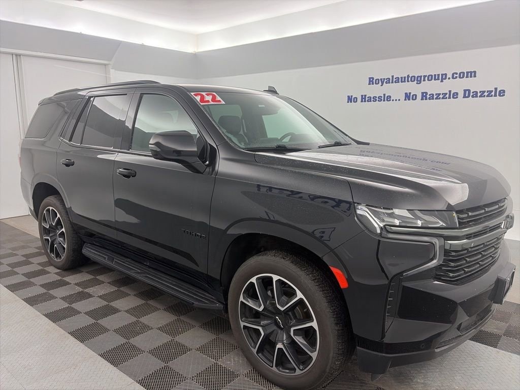 2022 Chevrolet Tahoe RST 4WD Black 10-Speed Automatic with Overdrive EcoTec3 5.3L V8Odometer is 48800 miles below market average!Awards:* ALG Residual ValueRoyal Motor Company is proud to offer this wonderful 2022 Chevrolet Tahoe a positively great SUV with the following Features: Driver Alert Package (Lane Change Alert w/Side Blind Zone Alert and Rear Cross Traffic Alert), License Plate Front Mounting Package, Luxury Package (2nd Row Pwr Release 60/40 Split-Folding Bench Seat, 3rd Row 60/40 Power-Folding Split-Bench Seat, HD Surround Vision, Heated 2nd Row Outboard Seats, Heated Steering Wheel, Memory Settings, Outside Heated Power-Adjustable Mirrors, Power Tilt & Telescopic Steering Column, and Rear Pedestrian Alert), Preferred Equipment Group 1SP (1st & 2nd Row Color-Keyed Carpeted Floor Mats, Auto-Dimming Inside Rear-View Mirror, Automatic Stop/Start, Bose 9-Speaker Stereo Audio System Feature, Bright Front & Rear Door Sill Plates, Color-Keyed Carpeting Floor Covering, Driver & Front Outboard Passenger Airbags, Enhanced Driver Information Center, Floor Console w/Storage Area, Hands-Free Rear Power Programmable Liftgate, Infotainment Display, Leather-Wrapped Steering Wheel, LED Daytime Running Lamps, Memory Settings for Driver, Remote Start, SiriusXM Radio w/360L, Start/Stop System Disable Button, Universal Home Remote, and Wireless Charging), 10-Way Power Driver & Passenger Seat Adjusters, 3.23 Rear Axle Ratio, 3rd row seats: split-bench, 4-Wheel Disc Brakes, 9 Speakers, ABS brakes, Air Conditioning, Alloy wheels, AM/FM radio: SiriusXM with 360L, Apple CarPlay/Android Auto, Auto High-beam Headlights, Auto-dimming Rear-View mirror, Automatic temperature control, Brake assist, Bumpers: body-color, Compass, Delay-off headlights, Driver door bin, Driver vanity mirror, Dual front impact airbags, Dual front side impact airbags, Electronic Stability Control, Emergency communication system: OnStar and Chevrolet connected services capable, Four wheel independent suspension, Front anti-roll bar, Front Bucket Seats, Front Center Armrest, Front dual zone A/C, Front High-Back Reclining Bucket Seats, Front reading lights, Fully automatic headlights, Garage door transmitter, Heated door mirrors, Heated Driver & Front Passenger Seats, Heated front seats, Illuminated entry, Leather steering wheel, Low tire pressure warning, Memory seat, Navigation System, Not Equipped w/Heated Steering Wheel (DISC), Not Equipped w/Steering Column Lock, Occupant sensing airbag, Outside temperature display, Overhead airbag, Overhead console, Panic alarm, Passenger door bin, Passenger vanity mirror, Perforated Leather Seat Trim, Power door mirrors, Power driver seat, Power Liftgate, Power passenger seat, Power Release 2nd Row Bucket Seats, Power steering, Power windows, Premium audio system: Chevrolet Infotainment System 3, Premium Smooth Ride Suspension, Radio: Chevrolet Infotainment 3 Premium System, Rain sensing wipers, Rear air conditioning, Rear anti-roll bar, Rear reading lights, Rear seat center armrest, Rear window defroster, Rear window wiper, Remote keyless entry, Roof rack: rails only, Security system, Set of 4 Wheel Locks (LPO), Speed control, Speed-sensing steering, Split folding rear seat, Spoiler, Steering wheel mounted audio controls, Tachometer, Telescoping steering wheel, Tilt steering wheel, Traction control, Trip computer, Variably intermittent wipers, Voltmeter, and Wheels: 22 x 9 Bright Machined.