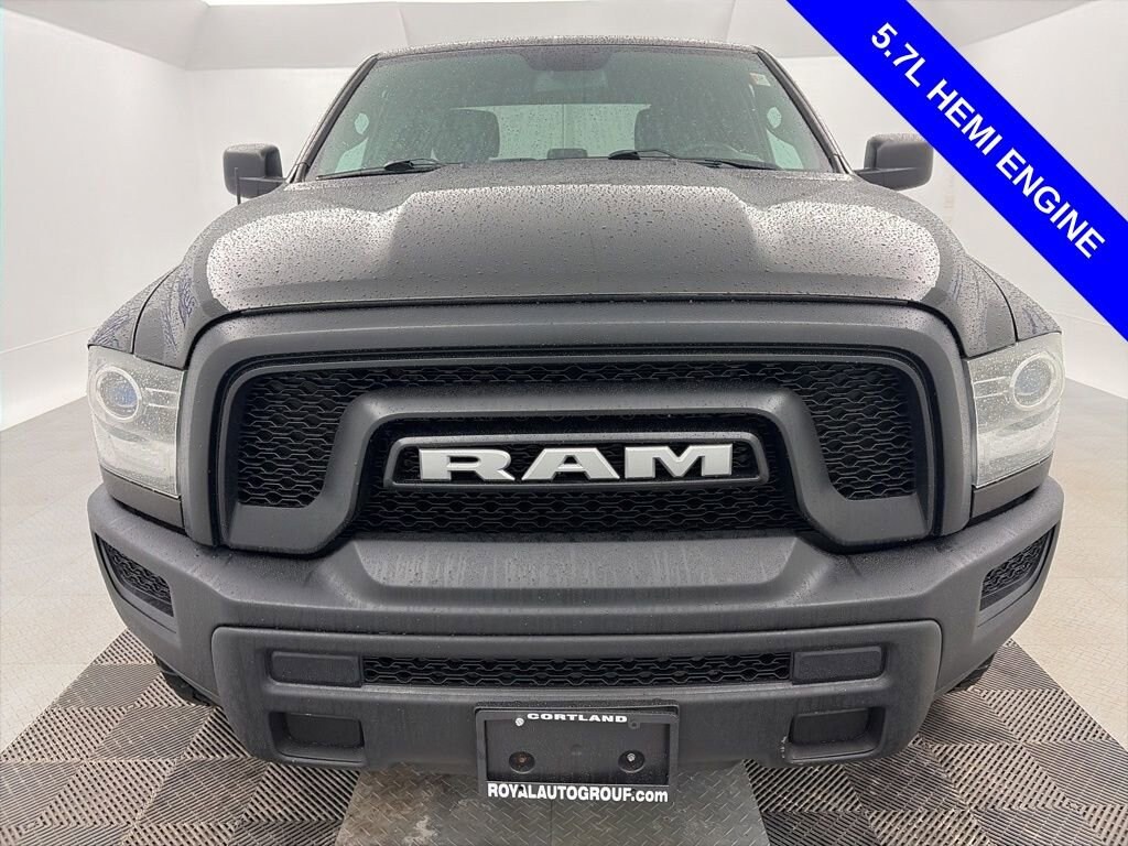 2021 Ram 1500 Classic Warlock 4WD Diamond Black Crystal Pearlcoat 8-Speed Automatic HEMI 5.7L V8 Multi Displacement VVTOdometer is 14383 miles below market average!Royal Motor Company is proud to offer this handsome 2021 Ram 1500 Classic a truly good-looking Truck with the following Features: Electronics Group (1-Year SiriusXM Guardian Trial, 8.4 Touchscreen Display, Air Conditioning ATC w/Dual Zone Control, Apple CarPlay, Cluster 7.0 TFT Color Display, Google Android Auto, HD Radio, Media Hub (2 USB, AUX), Radio: Uconnect 4C w/8.4 Display, and USB Host Flip), Quick Order Package 26F Warlock (4x4 Flat Black Badge, Bi-Function Halogen Projector Headlamps, Black Door Handles, Black Exterior Truck Badging, Black Grille w/RAM Lettering, Black Headlamp Filler Panel, Black Powder Coated Front Bumper, Black Powder Coated Rear Bumper, Black RAM Head Tailgate Badge, Black Wheel Flares, Dual Rear Exhaust w/Bright Tips, Front Wheel Well Liners, ParkSense Rear Park Assist System, Raised Ride Height, Rear Extra HD Shock Absorbers, Semi-Gloss Black Hub, Sport Tail Lamps, Warlock, Warlock Interior Accents, and Wheels: 20 x 9 Semi-Gloss Black Aluminum), Remote Start & Security Alarm Group (Remote Start System and Security Alarm), 3.21 Rear Axle Ratio, 4-Wheel Disc Brakes, 40/20/40 Split Bench Seat, 6 Speakers, ABS brakes, Active Grille Shutters, Air Conditioning, Alloy wheels, AM/FM radio: SiriusXM, Black Exterior Mirrors, Brake assist, Bumpers: chrome, Center Hub, Charge Only Remote USB Port, Cloth 40/20/40 Bench Seat, Compass, Delay-off headlights, Driver door bin, Dual front impact airbags, Dual front side impact airbags, Electronic Shift, Electronic Stability Control, Exterior Mirrors w/Heating Element, Front anti-roll bar, Front Armrest w/3 Cupholders, Front Center Armrest w/Storage, Front License Plate Bracket, Front reading lights, Front wheel independent suspension, Fully automatic headlights, GPS Antenna Input, Heated door mirrors, Illuminated entry, Integrated Voice Command w/Bluetooth, Low tire pressure warning, Occupant sensing airbag, Outside temperature display, Overhead airbag, Overhead console, Panic alarm, ParkView Rear Back-Up Camera, Passenger door bin, Passenger vanity mirror, Power door mirrors, Power steering, Power windows, Radio data system, Radio: Uconnect 3 w/5 Display, Rear anti-roll bar, Rear step bumper, Remote keyless entry, Rotary Shifter-Black, Speed control, Tachometer, Tilt steering wheel, Tip Start, Traction control, Trailer Brake Control, Trip computer, Variably intermittent wipers, and Voltmeter.