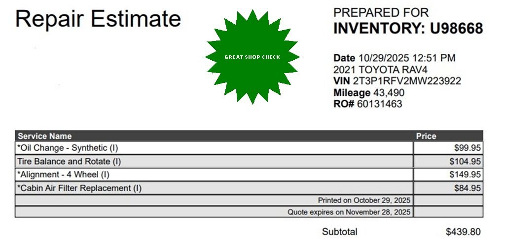 Royal Motor Company is proud to offer this great-looking 2021 Toyota RAV4 an absolutely superb-looking SUV with the following Features: 4-Wheel Disc Brakes, 6 Speakers, ABS brakes, Air Conditioning, Alloy wheels, AM/FM radio: SiriusXM, AM/FM Stereo, Apple CarPlay/Android Auto, Auto High-beam Headlights, Automatic temperature control, Axle Ratio: 3.177, Brake assist, Bumpers: body-color, Delay-off headlights, Driver door bin, Driver vanity mirror, Dual front impact airbags, Dual front side impact airbags, Electronic Stability Control, Emergency communication system, Exterior Parking Camera Rear, Fabric Seat Trim, Four wheel independent suspension, Front anti-roll bar, Front Bucket Seats, Front Center Armrest, Front dual zone A/C, Front fog lights, Front reading lights, Fully automatic headlights, Heated door mirrors, Illuminated entry, Knee airbag, Low tire pressure warning, Occupant sensing airbag, Outside temperature display, Overhead airbag, Overhead console, Panic alarm, Passenger door bin, Passenger vanity mirror, Power door mirrors, Power driver seat, Power steering, Power windows, Radio data system, Rear anti-roll bar, Rear seat center armrest, Rear window defroster, Rear window wiper, Remote keyless entry, Roof rack: rails only, Speed control, Speed-sensing steering, Split folding rear seat, Spoiler, Steering wheel mounted audio controls, Tachometer, Telescoping steering wheel, Tilt steering wheel, Traction control, Trip computer, Turn signal indicator mirrors, Variably intermittent wipers, and Wheels: 17 5-Spoke Silver Alloy.